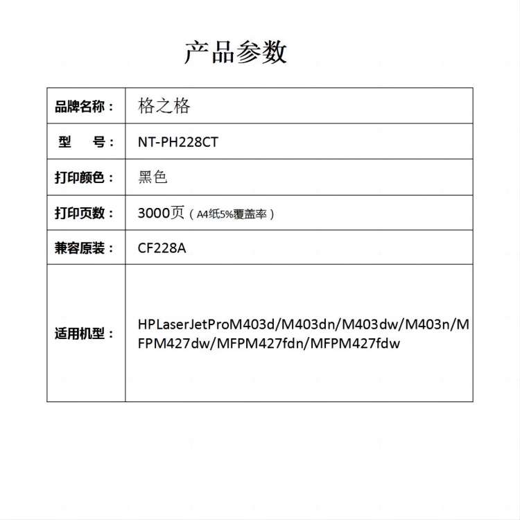 商品标题:格之格NT-PH228CT硒鼓(个)