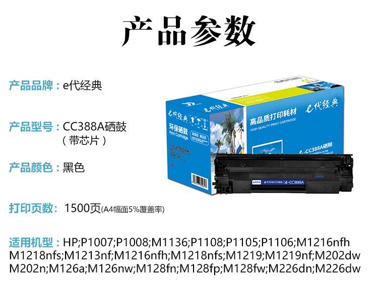 e代经典CC388A硒鼓黑(适用惠普hp m1136 p1108 M126a M226DW M1216 p1007 p1008 p1106 M1213nf)(支)