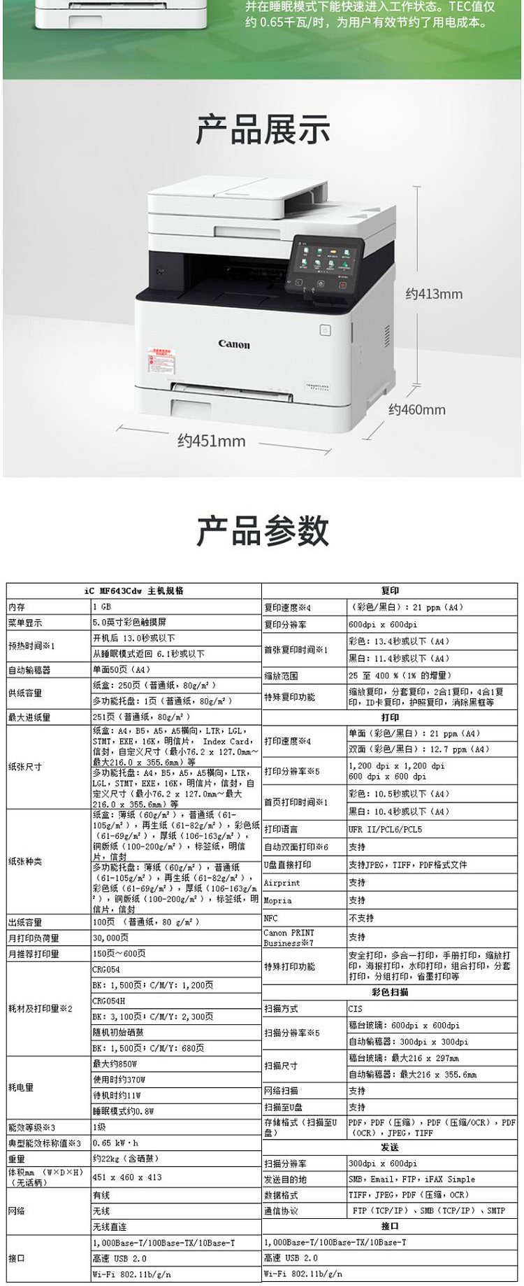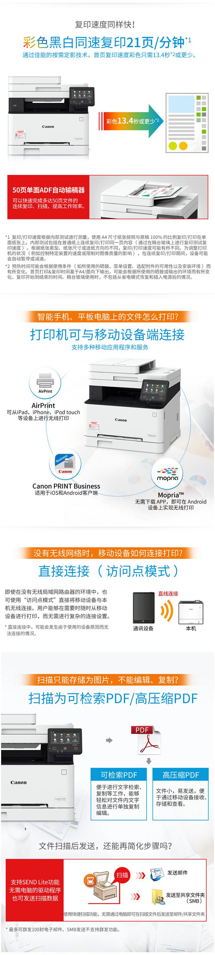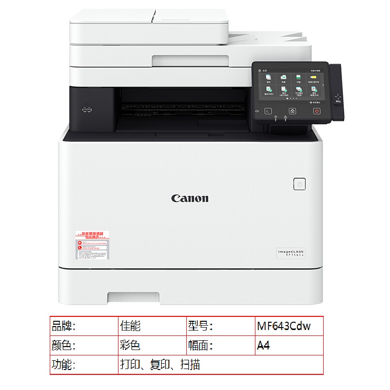 标题:佳能 MF643CDW 彩色多功能一体机 A4 白色 打印、复印、扫描