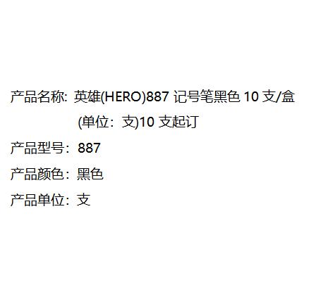 商品标题:英雄(HERO)887记号笔黑色10支/盒(单位:支)10支起订