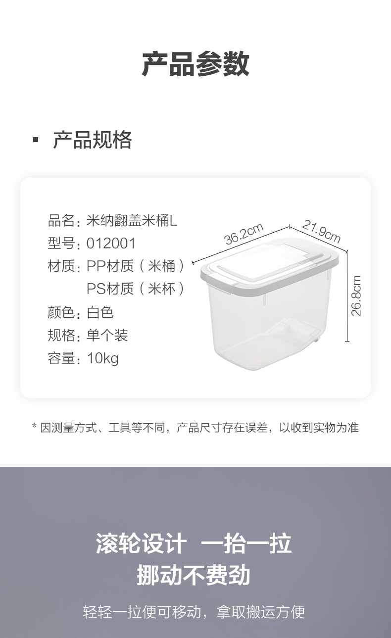 商品标题:茶花(CHAHUA)012001米纳翻盖米桶L 36.2*21.9*26.8 (单位:个)