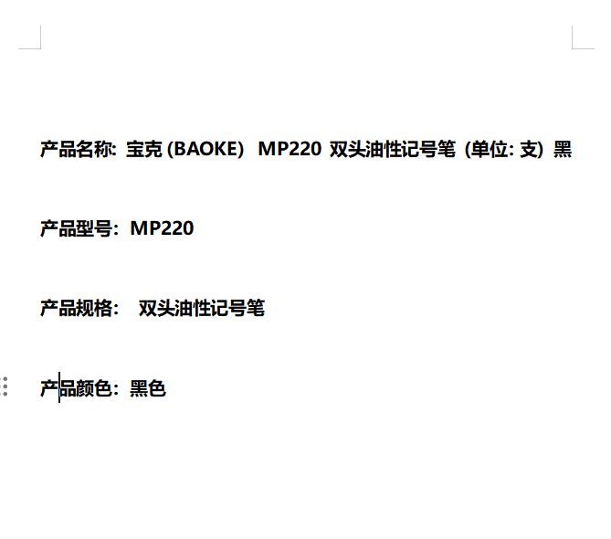 商品标题:宝克(BAOKE) MP220 双头油性记号笔 (单位:支) 黑