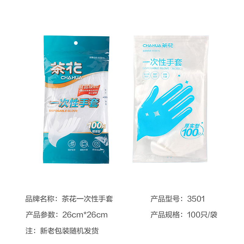 商品标题:茶花(CHAHUA)3501一次性手套(100只) 26*26 (单位:袋)