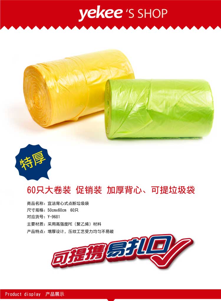 商品标题:宜洁Y-9681背心式点断垃圾袋(D型)(卷)