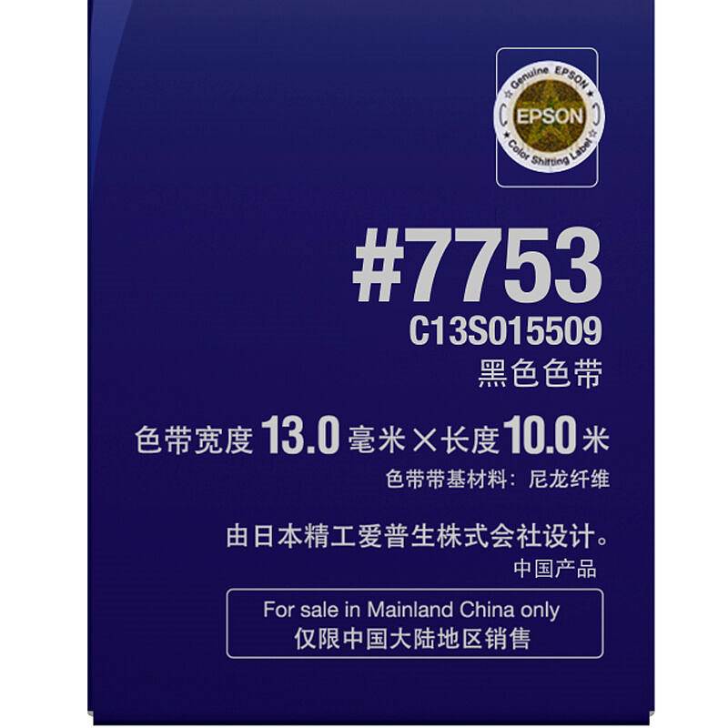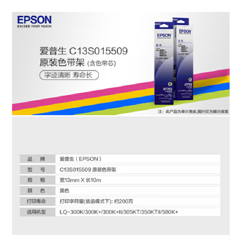 商品标题:爱普生 C13S015509原装色带(色带架含芯)黑色单支装(适用于LQ-300K+II/305KT/305KTII等)色带架:13mm*10m(支)