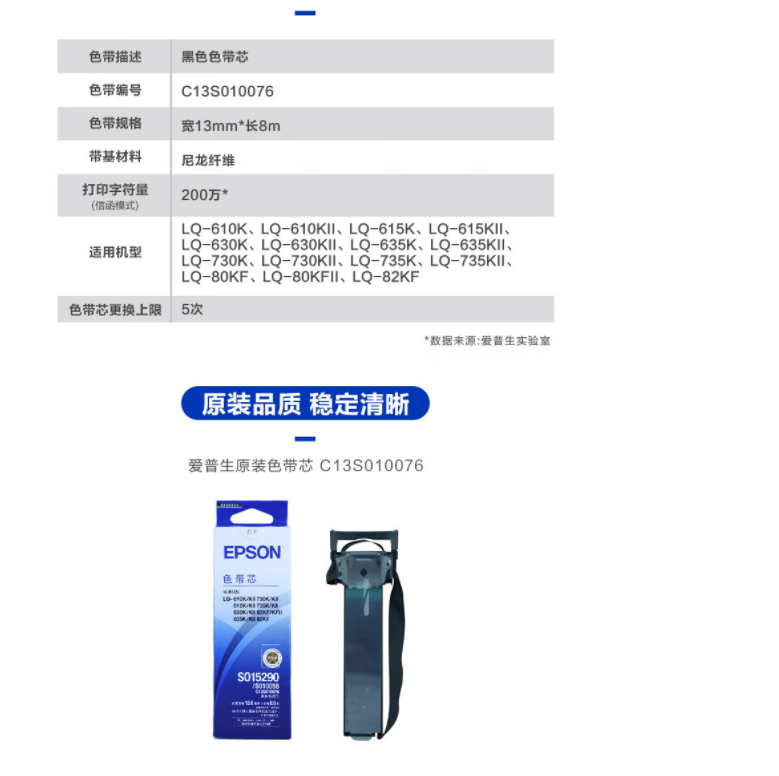 商品标题:爱普生(EPSON)C13S010076标牌色带(单位:支)