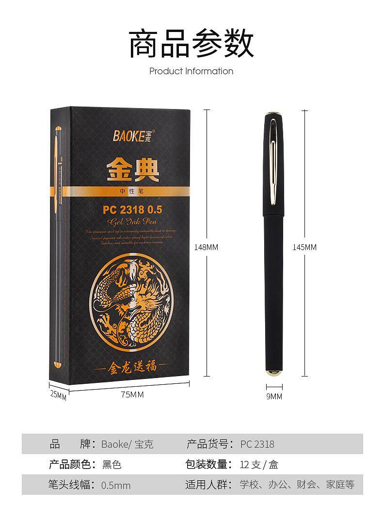 商品标题:宝克PC2318中性笔黑色0.5mm,12支/盒(盒)