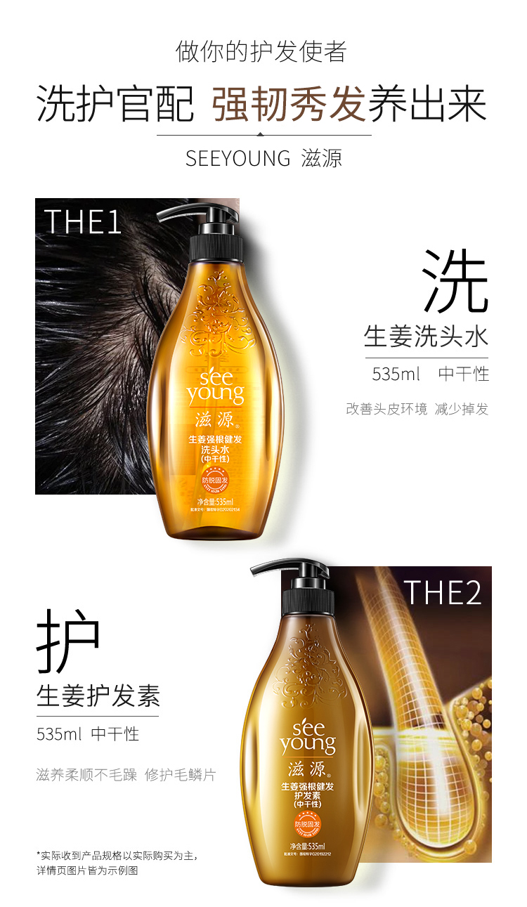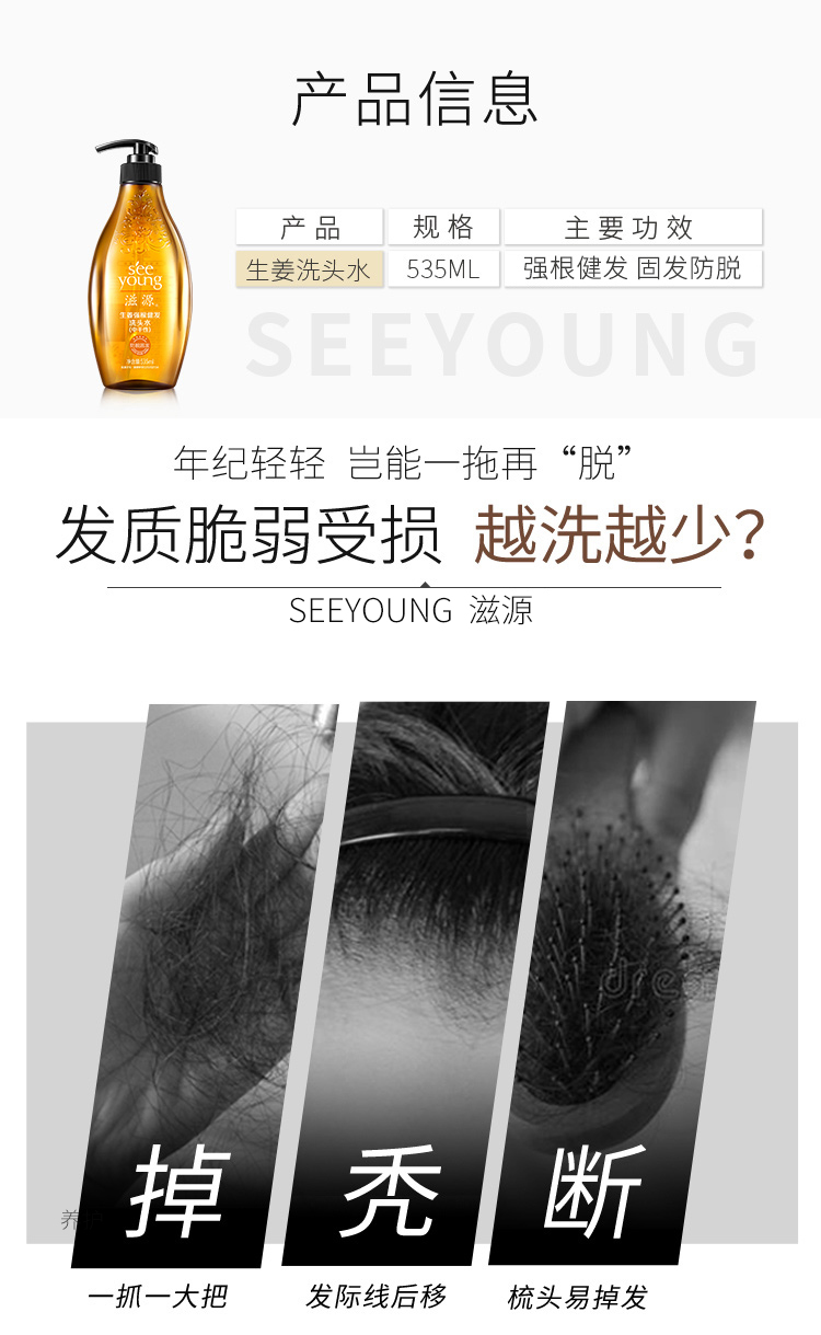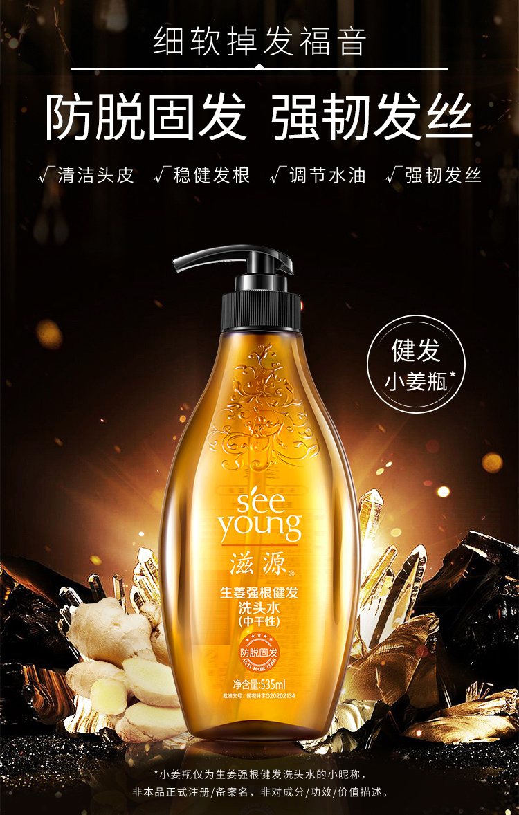 滋源(seeyoung)生姜强根健发柔韧洗发水535ML(中干性头皮)(瓶)