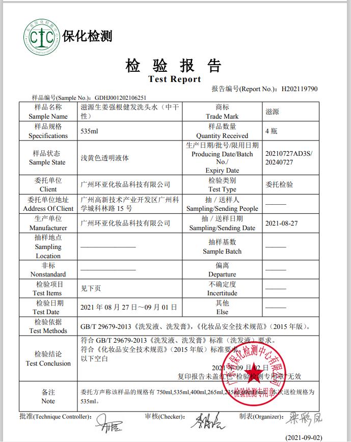 商品标题:滋源生姜强根健发柔韧洗发水535ML(中干性头皮)(瓶)