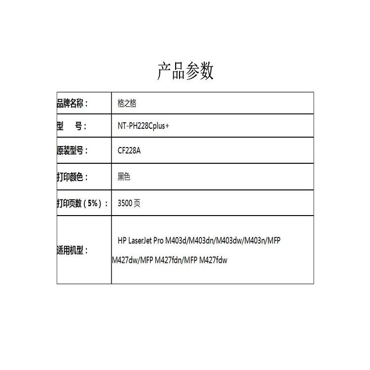 格之格(G&G)NT-PH228CPLUS+兼容CF228A硒鼓(鼓粉一体)黑色单支装(适用机型:HP LaserJet Pro M403d/M403dn/M403dw/M403n/MFP M427dw/MFP M427fdn/MFP M427fdw)打印量:3500页(个)