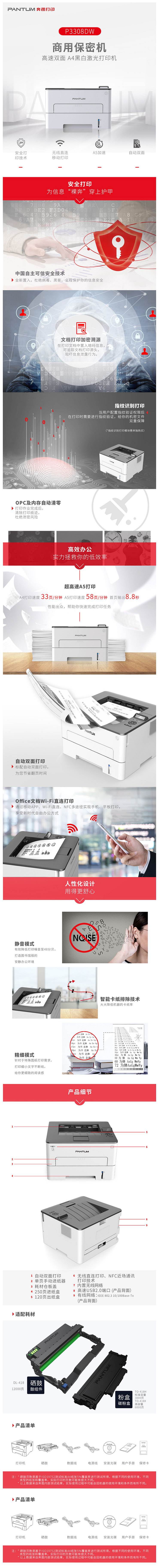 商品标题:奔图P3308DW黑白激光打印机(台)