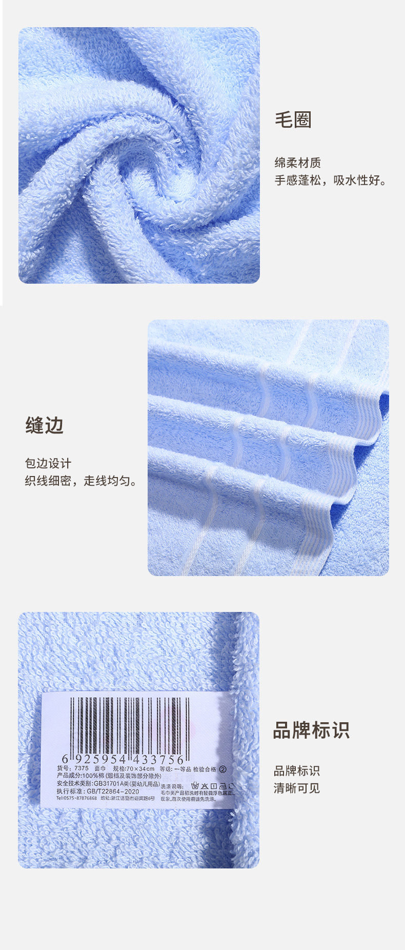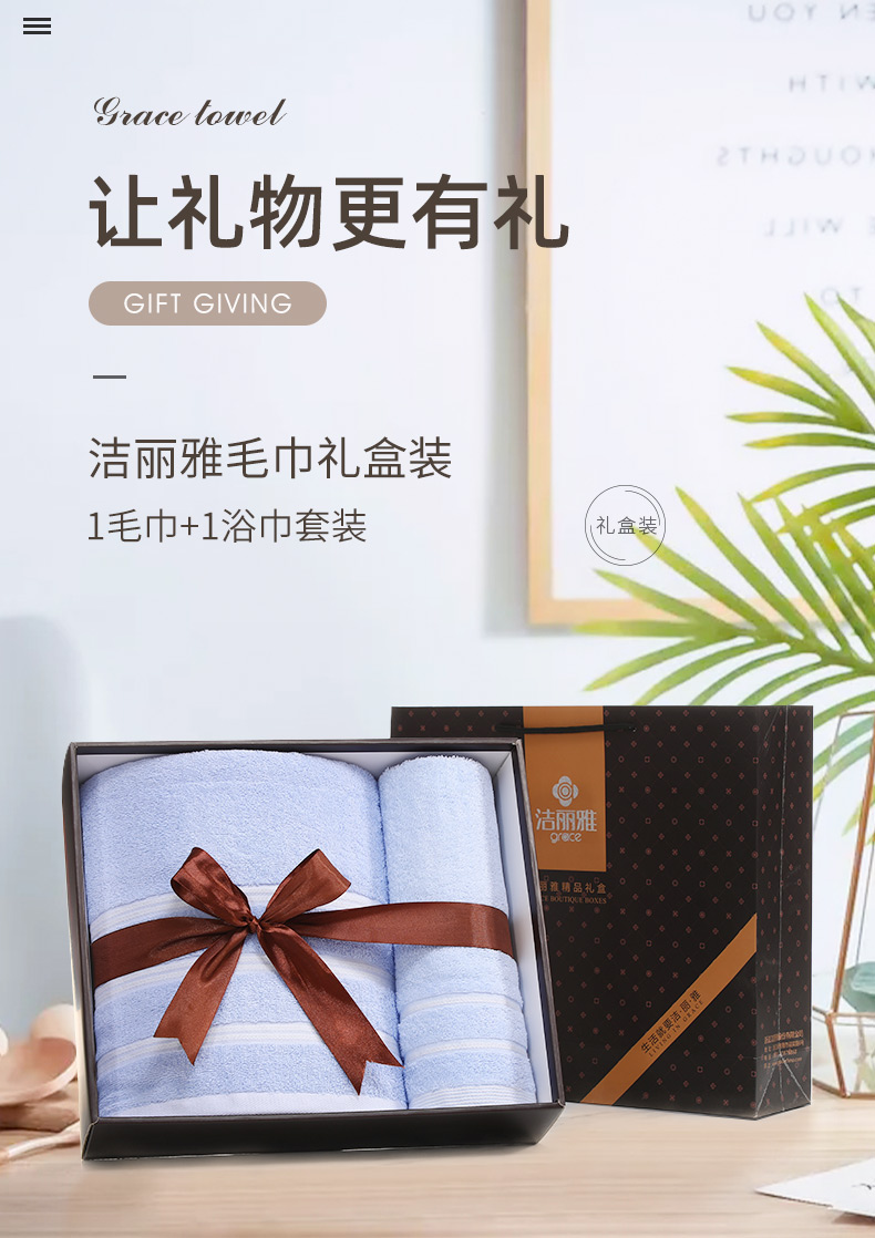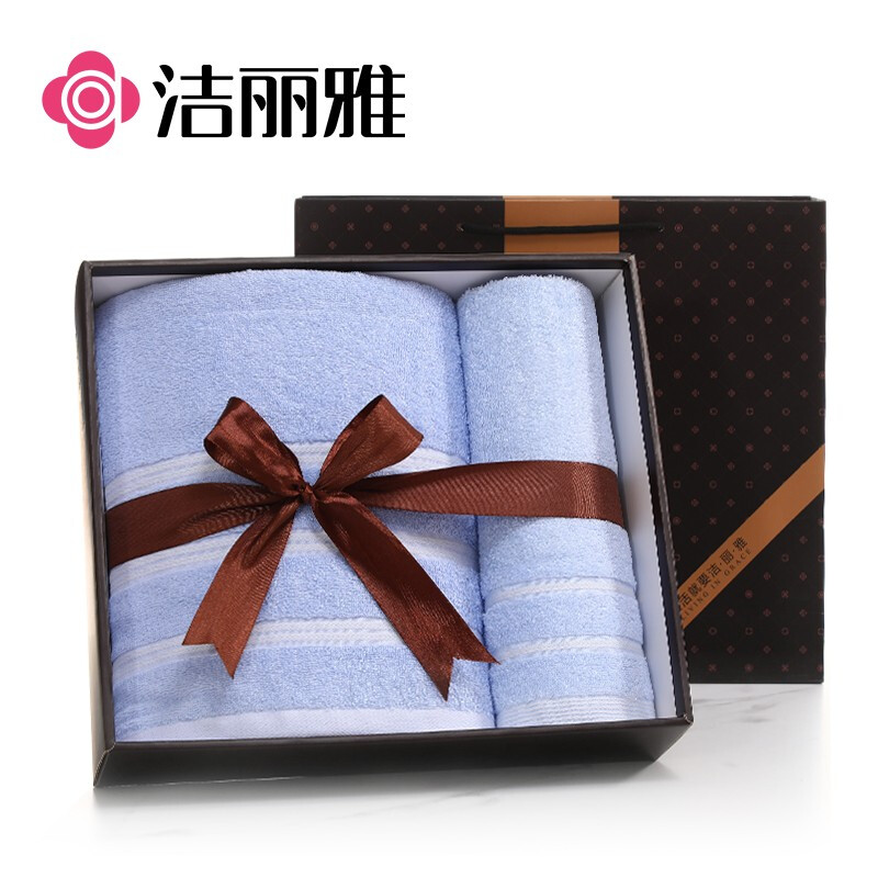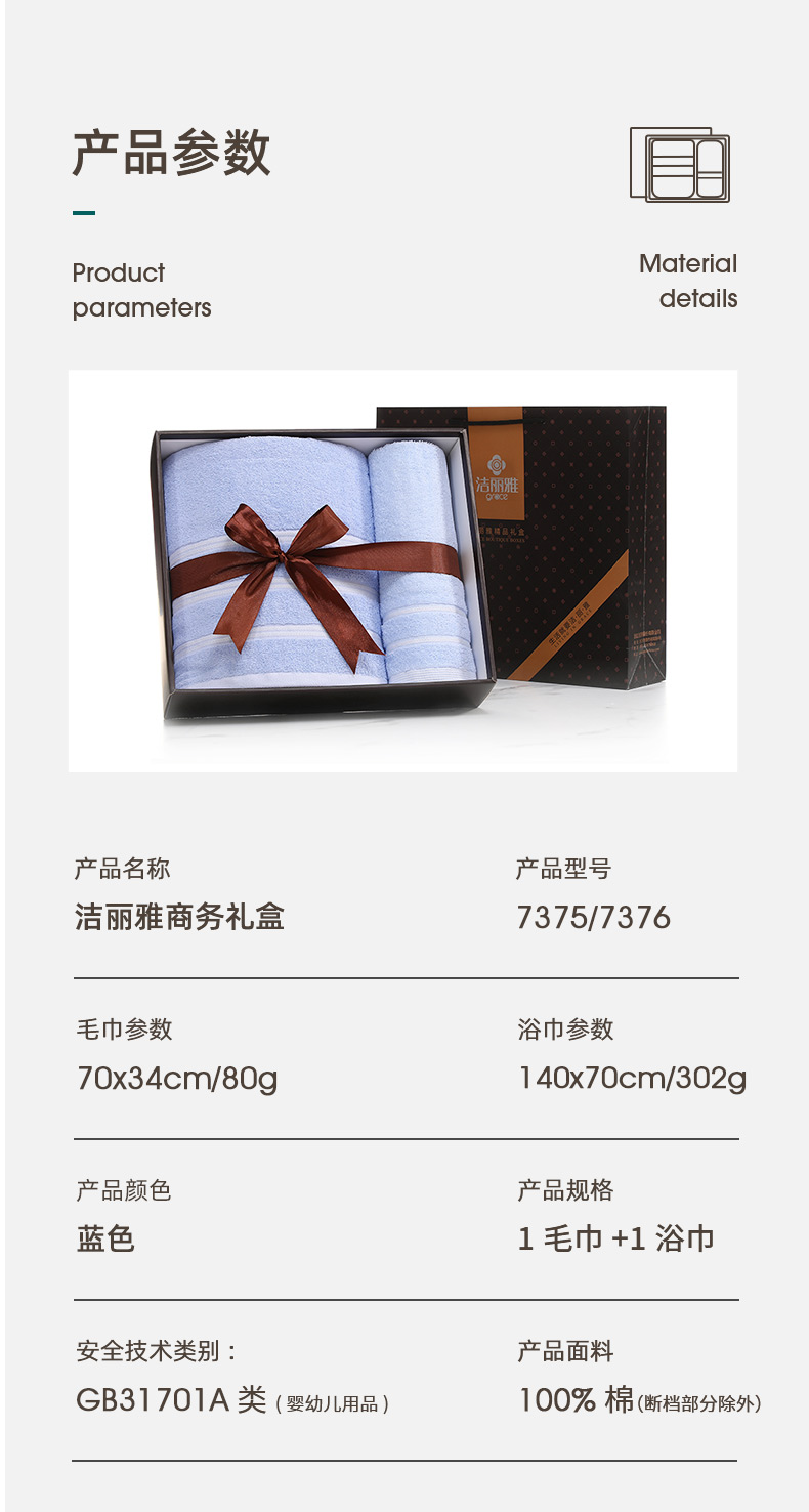 洁丽雅7375+7376毛巾*1浴巾*1套装70*34cm80g/70*140cm302g 蓝色(单位:盒)