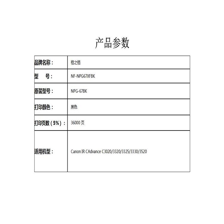 格之格NF-NPG67XFBK兼容碳粉盒(支)(适用于佳能Canon IR CAdvance C3020 3320 3325 3330 3520)
