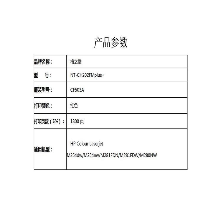 名称:格之格NT-CH202FMplus+硒鼓红(只)
