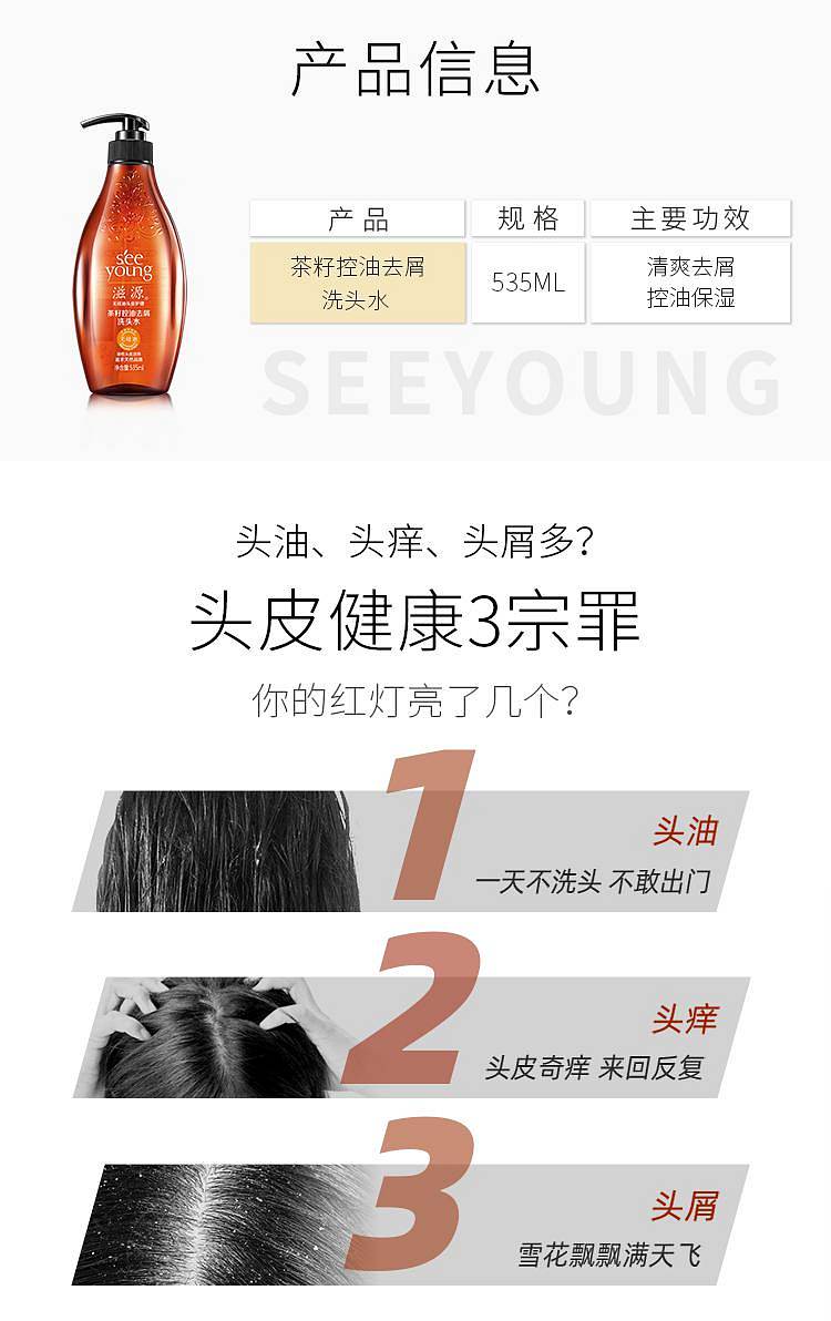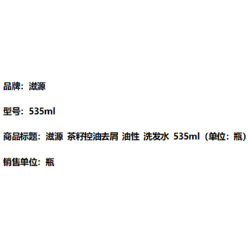 商品标题:滋源 茶籽控油去屑 油性 洗发水 535ml(单位:瓶)