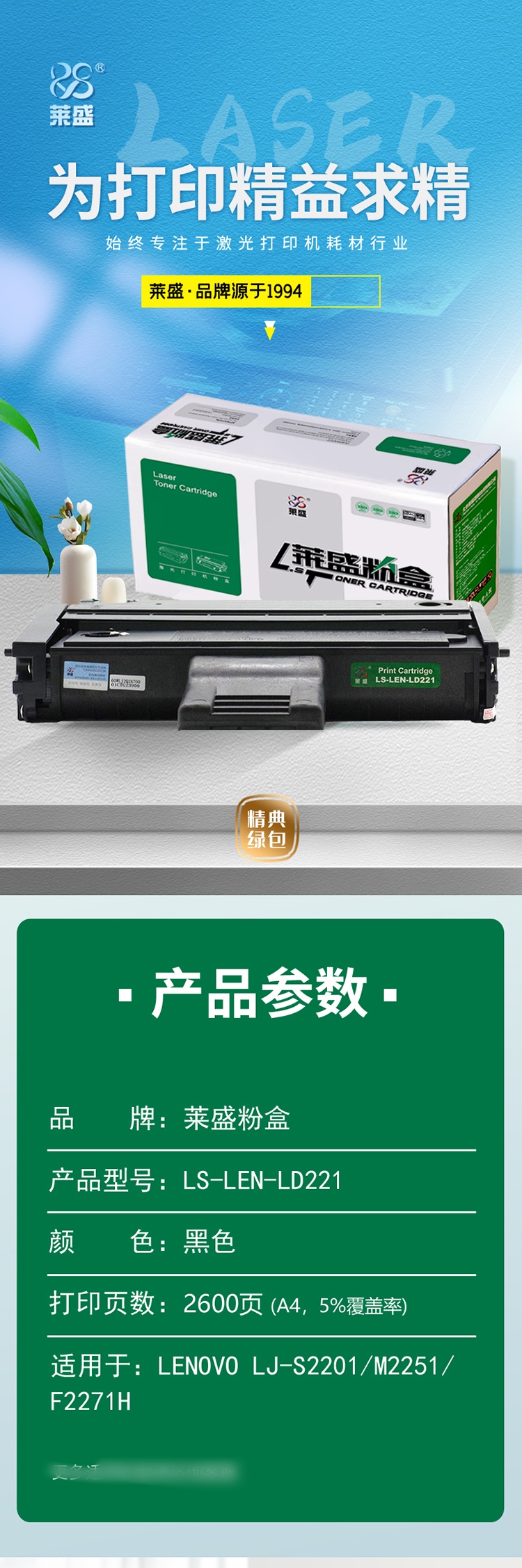 商品标题:莱盛 LS-LEN-LD221 硒鼓 黑色 适用于 联想打印机(盒)