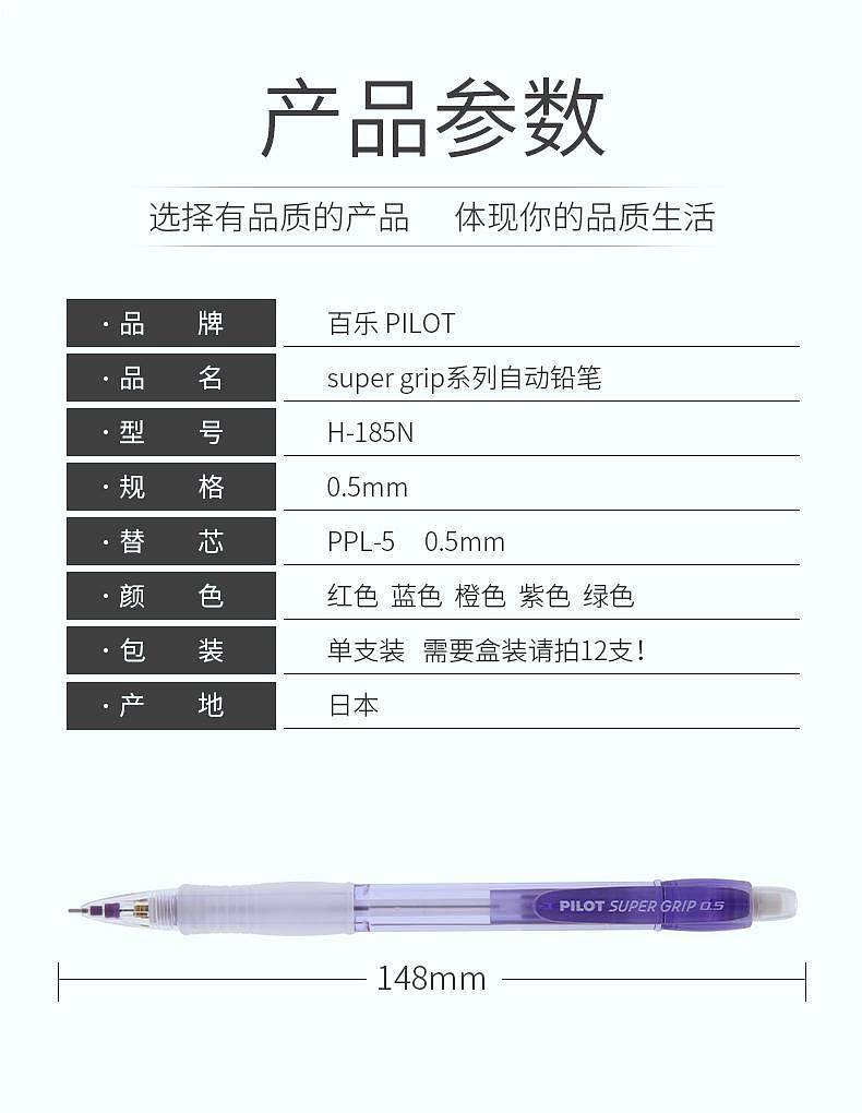 百乐H-185N绿杆自动铅笔0.5mm12支/盒(支)