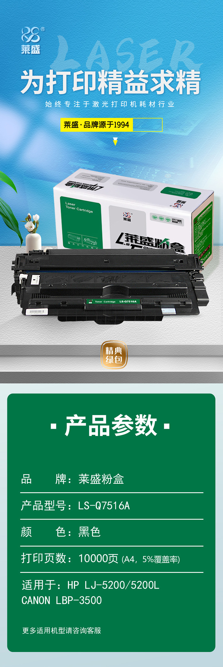 莱盛 LS-Q7516A 硒鼓(鼓粉一体) 黑色单支装 (适用于HP LJ-5200/5200L CANON LBP-3500) 打印页数:10000 (单位:支) 01.CTG.05200