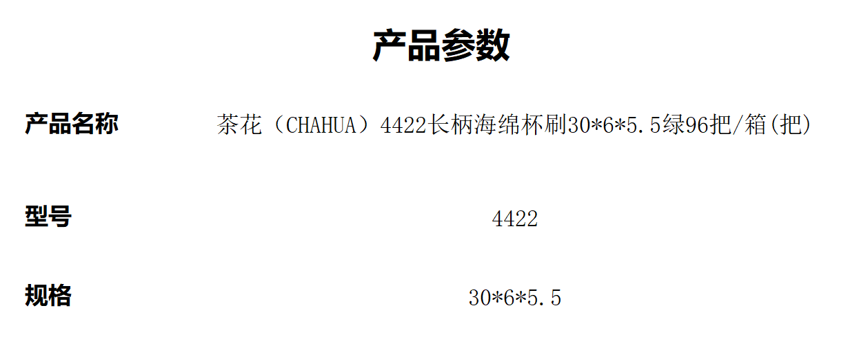 茶花(CHAHUA)4422长柄海绵杯刷30*6*5.5绿96把/箱(把)