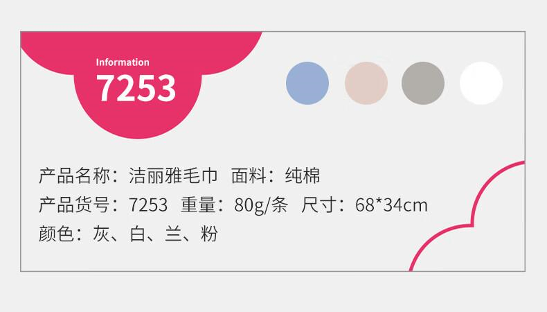 商品标题:洁丽雅7253A简柔毛巾68*34cm80g(条)