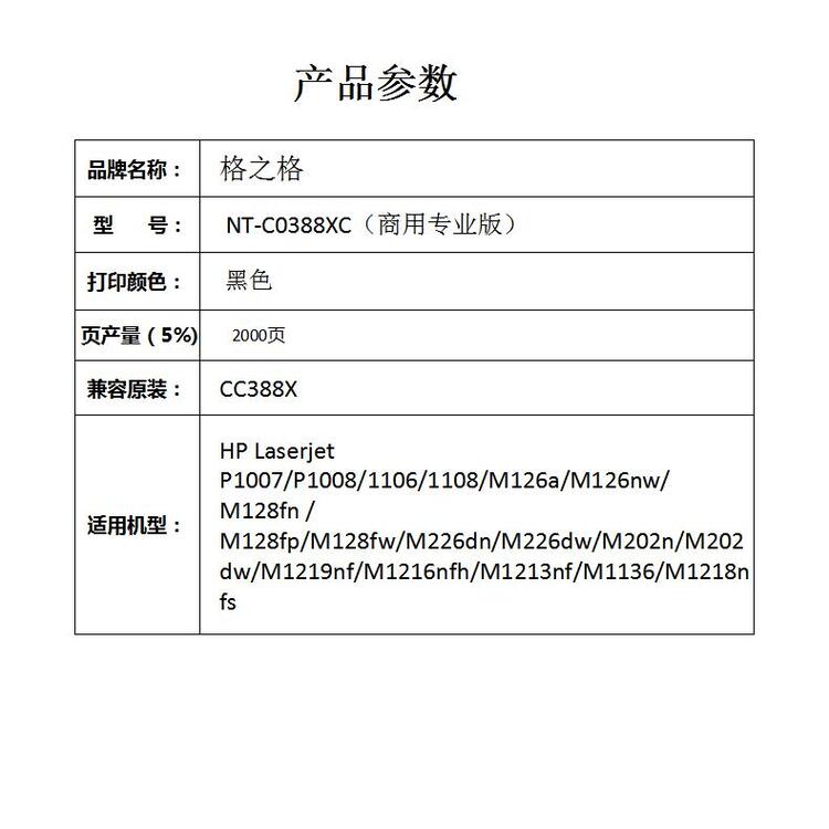 商品标题:格之格NT-CO388XC商用专业版硒鼓(只)