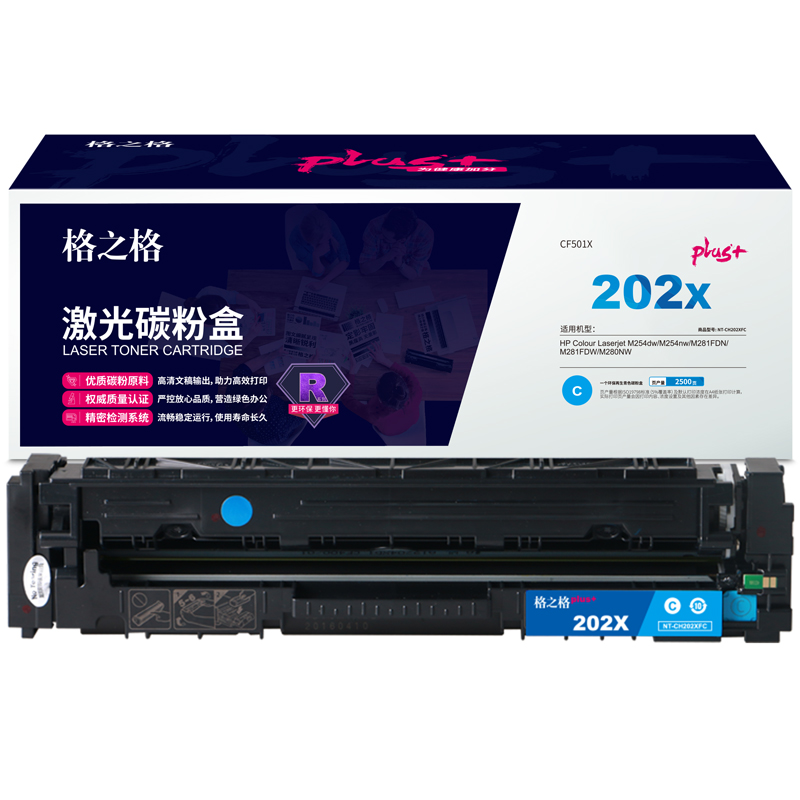 格之格 NT-CH202XFCplus+ 大容量硒鼓 青色(个)兼容CF501X(适用HP Colour Laserjet M254dw/M254nw/M281FDN/M281FDW/M280NW)