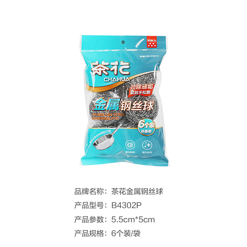 茶花(CHAHUA) B4302P 金属钢丝球特惠6个装Ø5.5*5cm(单位:袋)