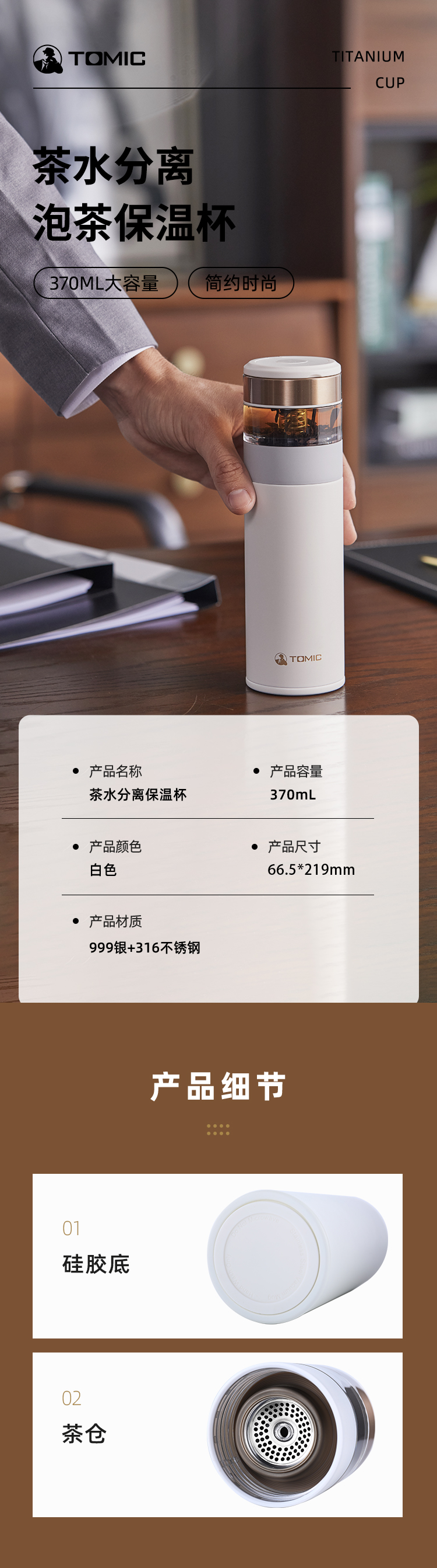 商品标题:特美刻(TOMIC) TW60051Y999银茶隔茶水分离保温杯礼盒装 370ml 白色