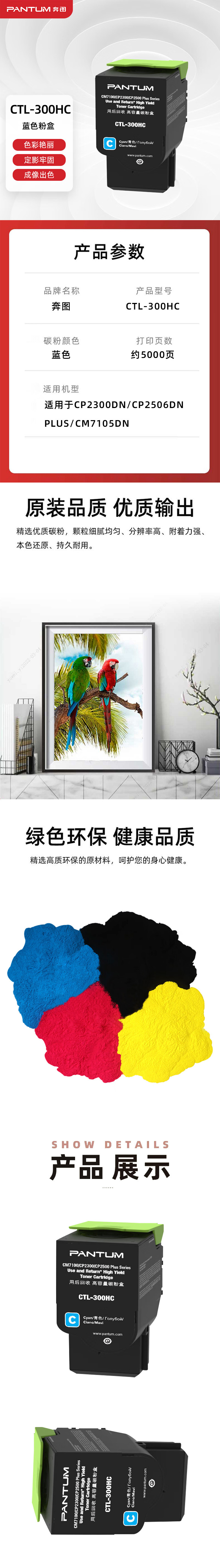 商品标题:奔图 CTL-300HC粉盒 青色(支)(适用机型CP2506DN)