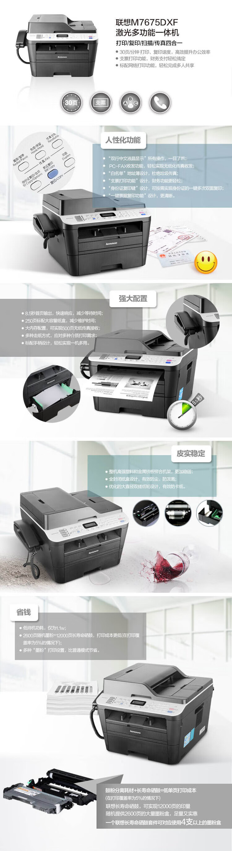 商品标题:联想 M7675DXF 黑白激光多功能一体机 (单位:台)