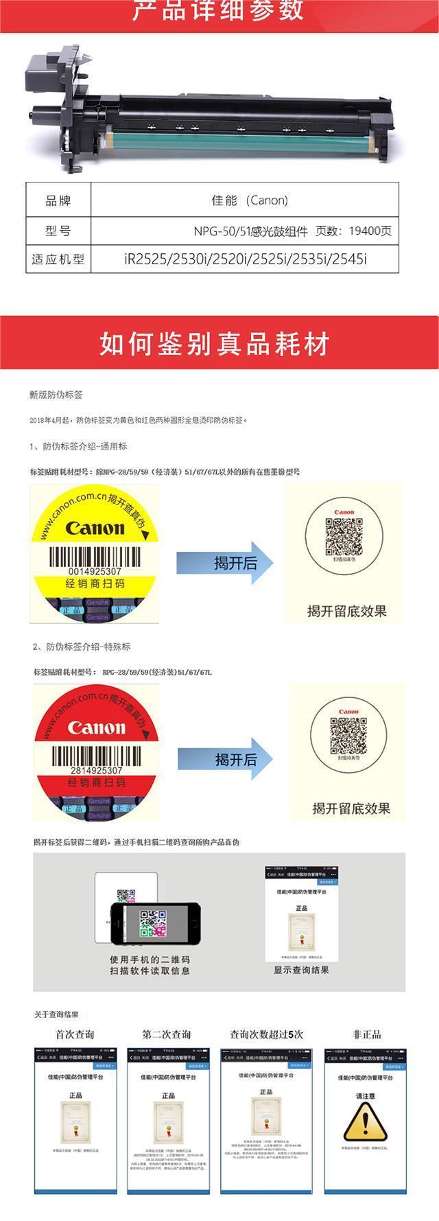 商品标题:佳能NPG-50/51原装感光鼓(鼓架组件) 黑色一只装(适合机型:佳能IR2530i/IR2535i)打印页数:140000页(单位:只)