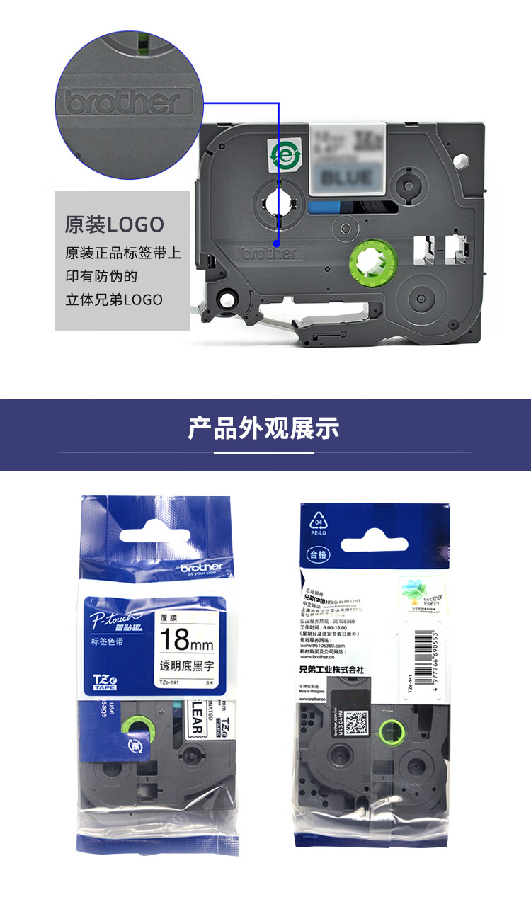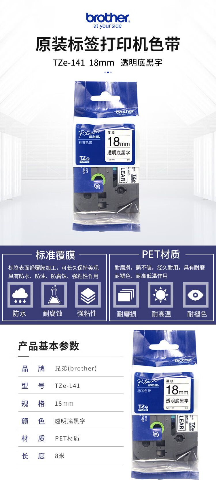 商品标题:兄弟 TZE-141 色带 (单位:个) 黑色