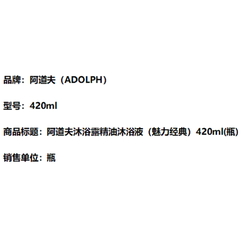 商品标题:阿道夫沐浴露精油沐浴液(魅力经典)420ml(瓶)