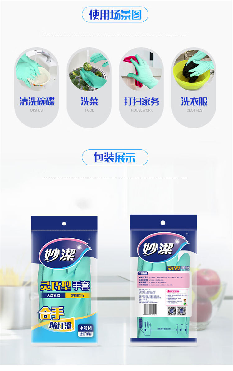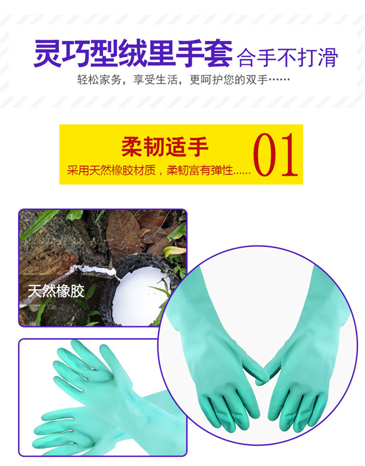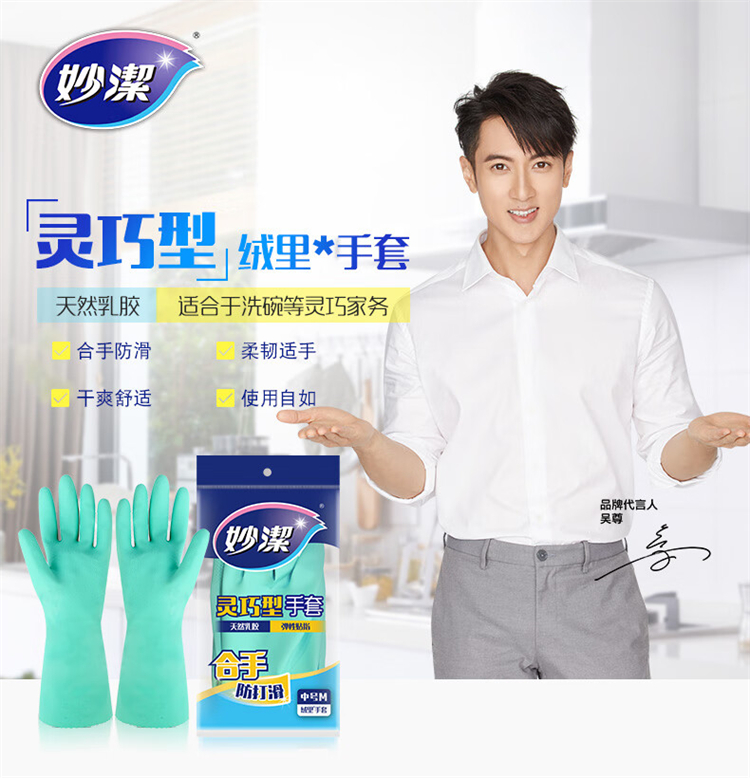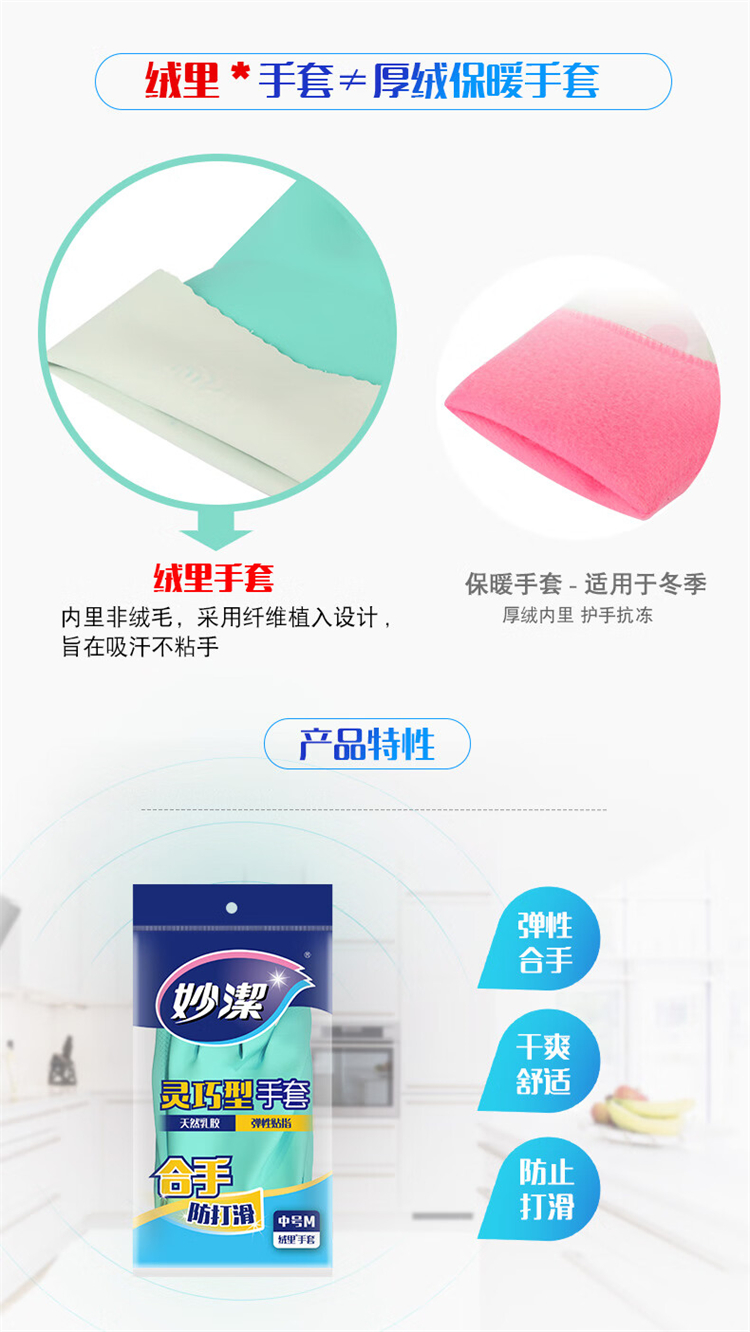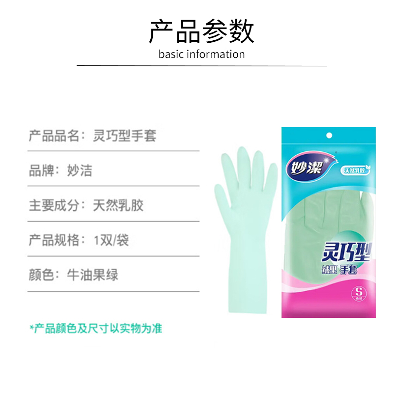商品标题: 妙洁S码天然橡胶绒里手套 灵巧型弹性贴指 家务手套(单位:双)