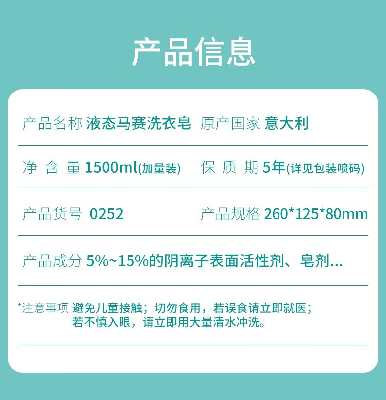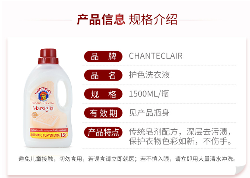 商品标题:大公鸡管家 马赛洗衣液(经典香型)1.5L(单位:瓶)