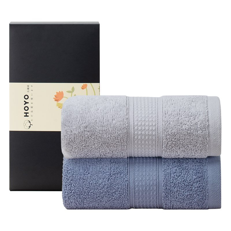 HOYO/2509臻品长绒棉毛巾2件套礼盒-浅灰深33*72cm(盒)