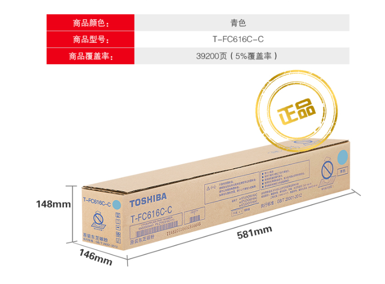 商品标题:东芝 T-FC616C-C 原装碳粉(单位:支)青色