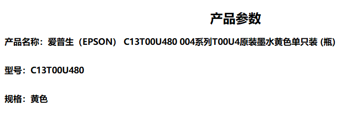 商品标题:爱普生004墨水C13T00U480黄色(适用于L3118)(瓶)