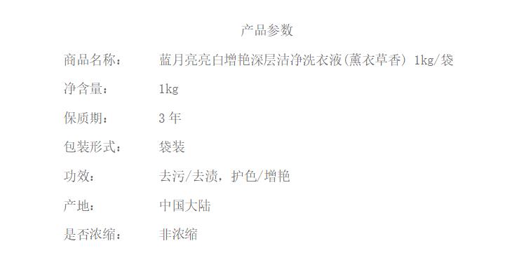 商品标题:蓝月亮薰衣草亮白增艳洗衣液袋装1kg(袋)