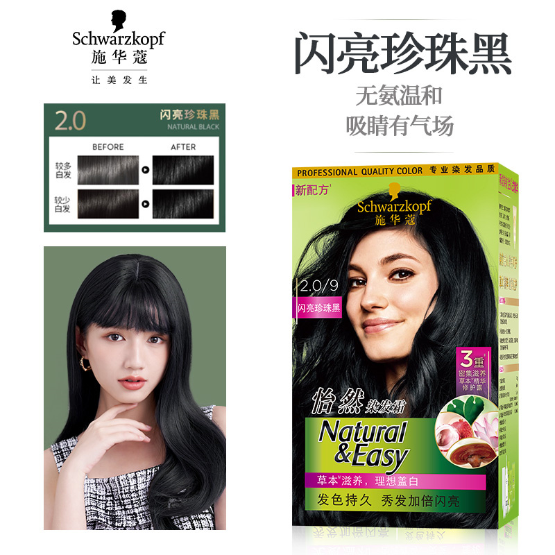 商品标题:施华蔻(Schwarzkopf)怡然染发霜2.0/9闪亮珍珠黑(单位:支)