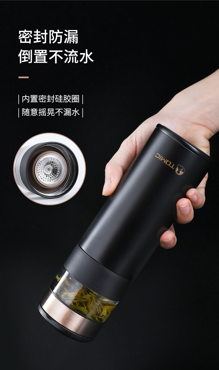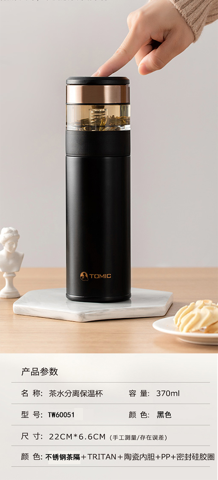 商品标题:特美刻(TOMIC) TW60051茶水分离陶瓷内胆保温杯 370ml 黑色