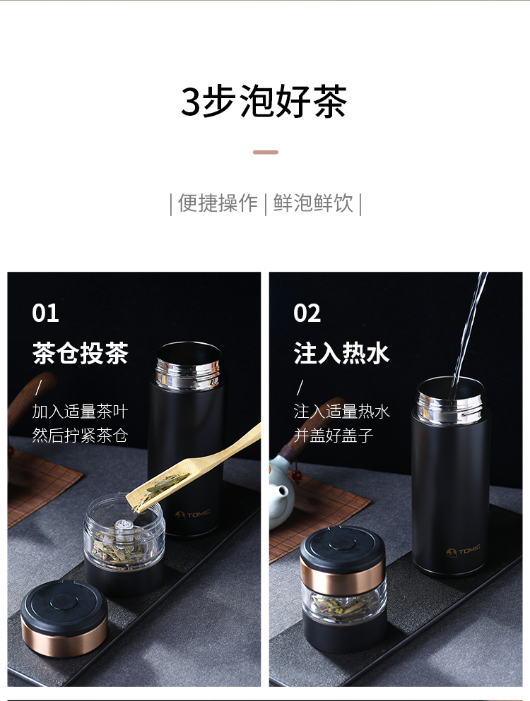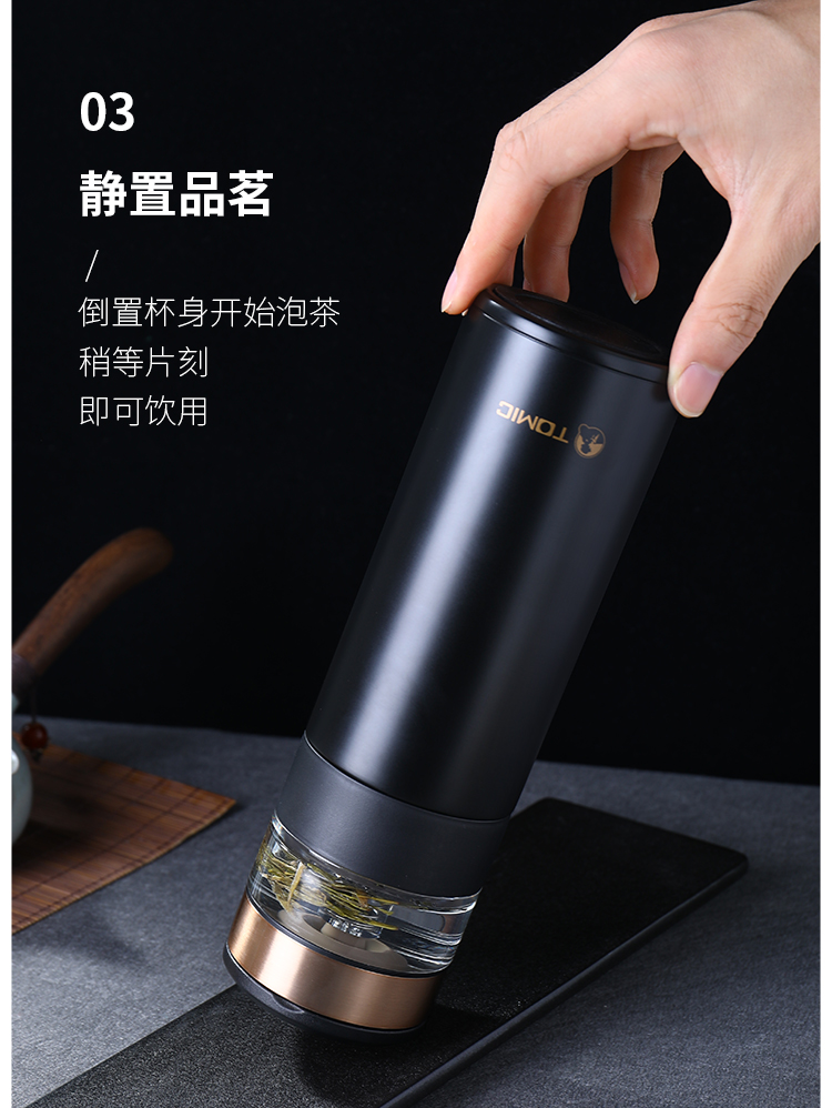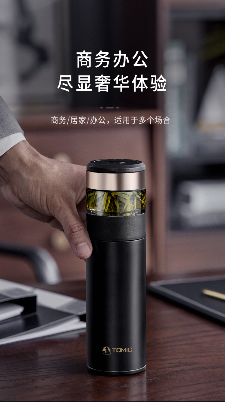 特美刻(TOMIC) TW60051茶水分离陶瓷内胆保温杯 370ml 黑色(单位:个)