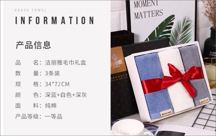 洁丽雅 W0355纯棉3条礼盒套装 72*34cm 105g(单位:盒)