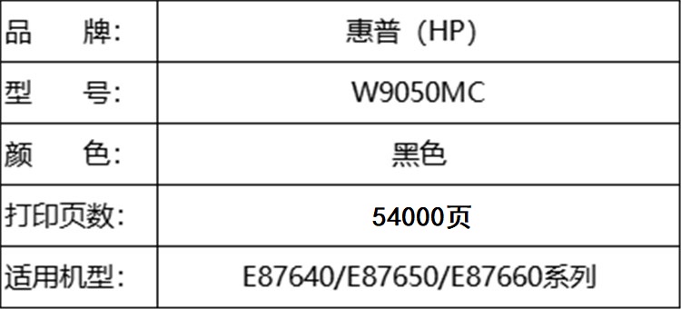 商品标题:惠普 W9050MC 原装墨粉黑色BK(单位:支)