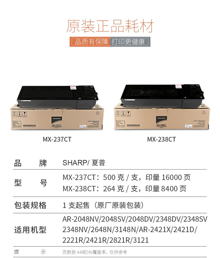 商品标题:夏普MX-238CT原装碳粉黑(支)