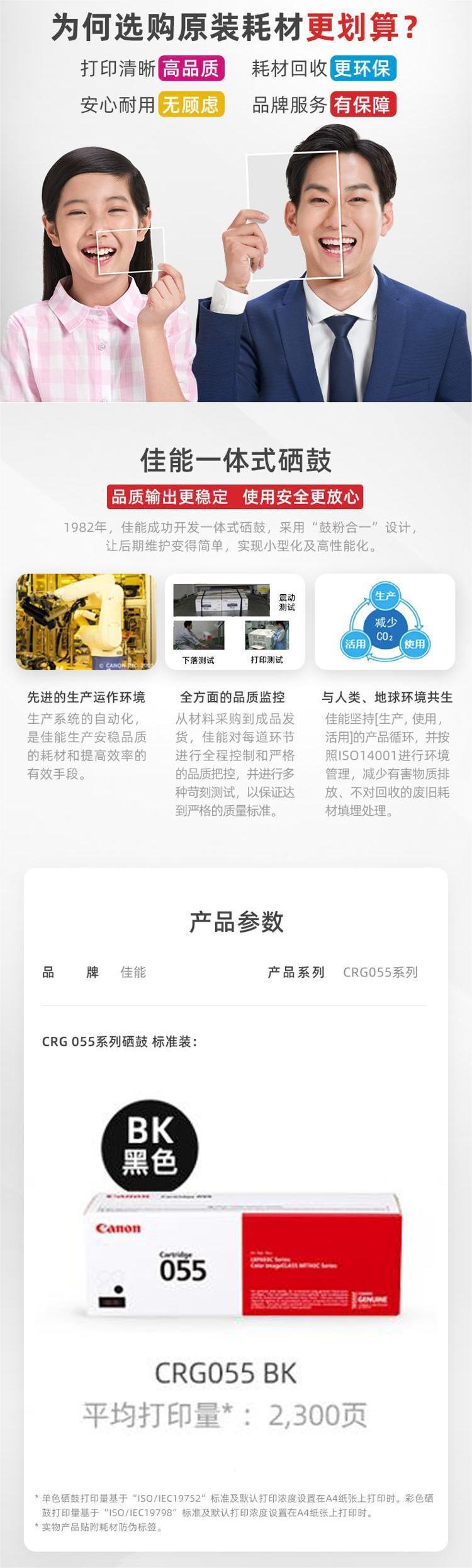 商品标题:佳能CRG-055BK-原装硒鼓黑色-2300页(适用MF742Cdw/MF746Cx/LBP663Cdw)(单位:支)