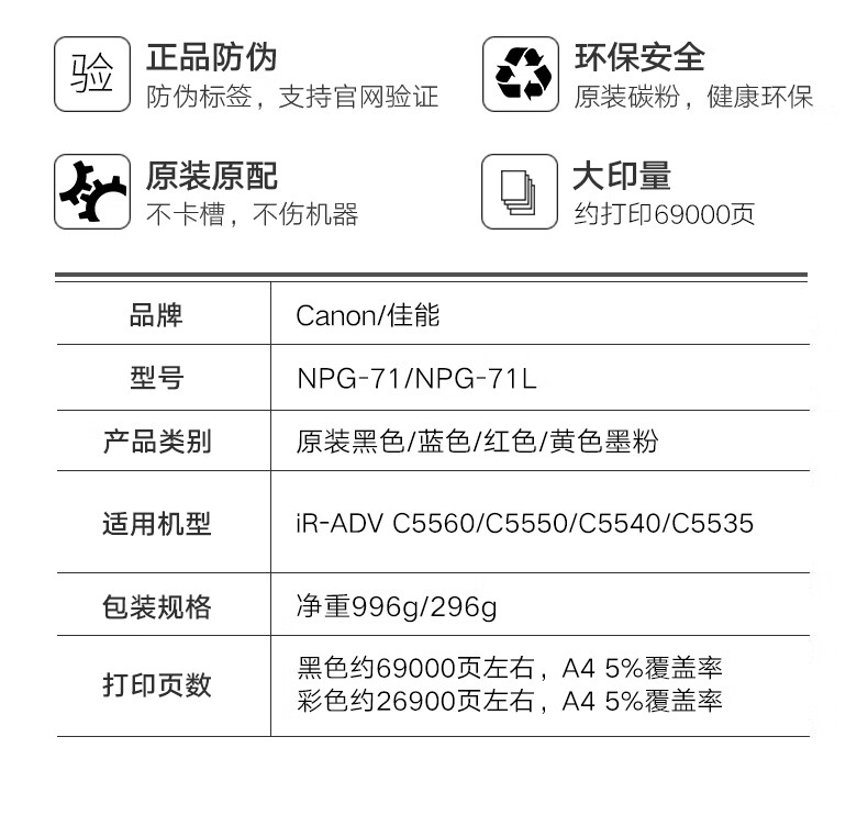 商品标题:佳能NPG-71L蓝原装墨粉(盒)