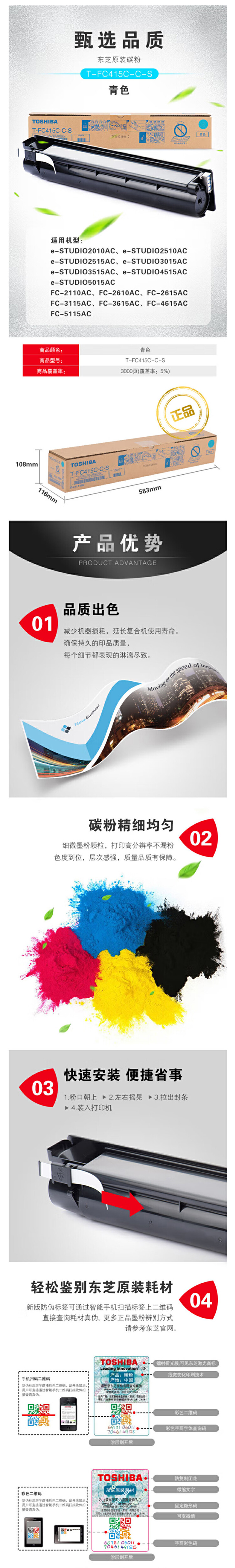 商品标题:东芝T-FC415C-C-S原装碳粉(低容)(支)