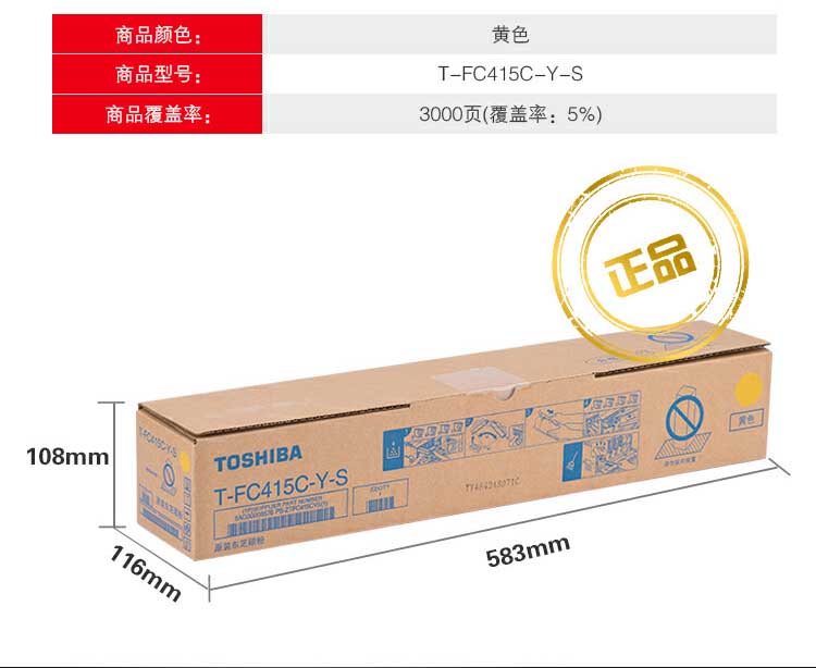 商品标题:东芝T-FC415C-Y-S原装碳粉(低容)(支)