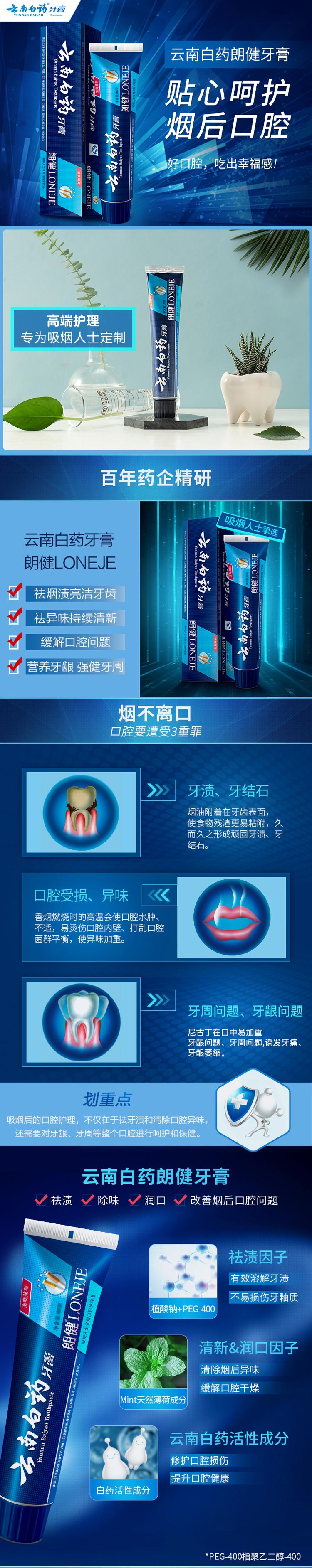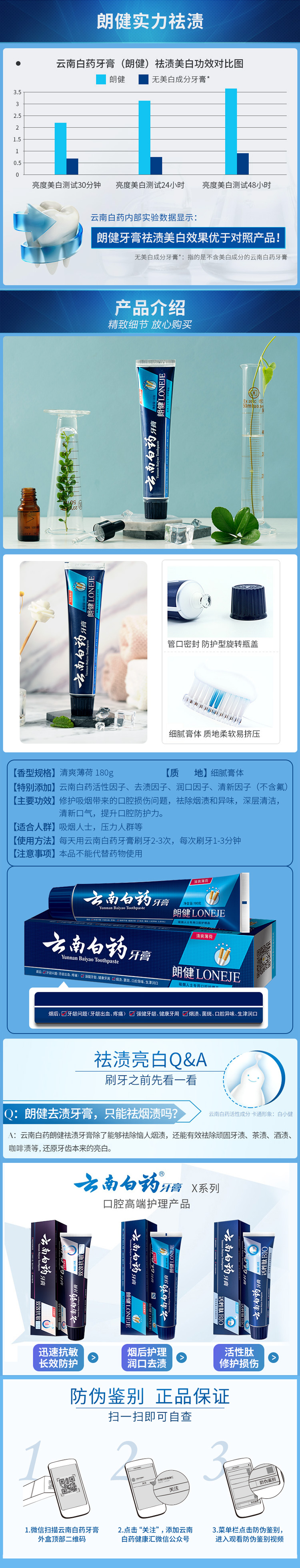 商品标题:云南白药郎健牙膏清爽薄荷180g(盒)